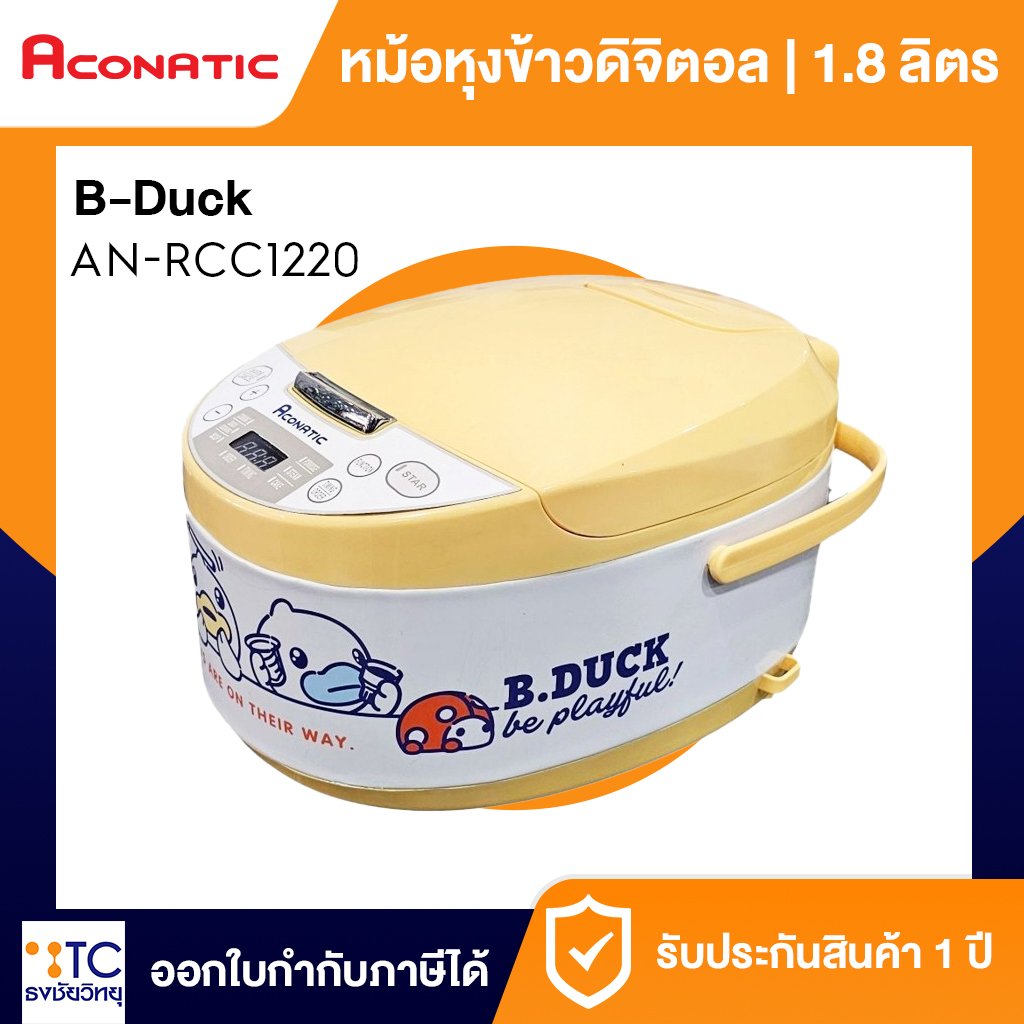 หม้อหุงข้าวดิจิตอล ลายลิขสิทธิ์แท้ B.Duck หุงทานได้สูงสุด 10 ถ้วย คุณสมบัติ• หม้อหุงข้าวเป็นแบบเคลือบ ล้างทำความสะอาดง่าย• ระบบทำงาน 8 ฟังก์ชั่น ทำอาหารได้หลากหลายเมนู หุงข้าว แกง ต้มซุป ต้มโจ๊ก เค้ก และ นึ่ง• ตั้งเวลาการใช้งานได้• มีระบบอุ่นอัตโนมัติ เมื่อข้าวสุก• ถอดล้างทำความสะอาดง่าย• วัสดุผลิตจาก Plastic Body กันความร้อน• อุปกรณ์เสริม : ตะแกรงนึ่ง / ทัพพี / ถ้วยตวงมอก.1039-2547