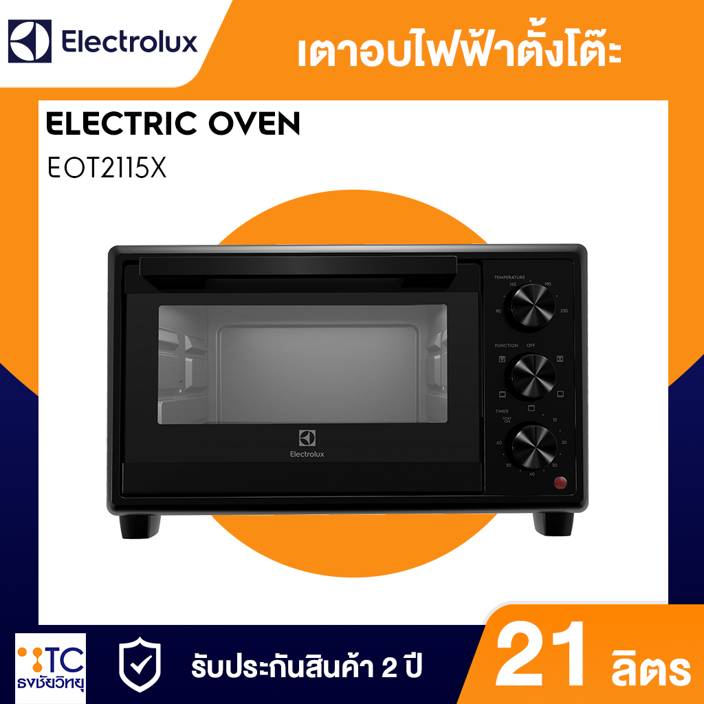 เตาอบไฟฟ้าตั้งโต๊ะ ขนาด 21 ลิตรคุณสมบัติ• เตาอบแบบ 3-in-1 ปิ้ง, อบ และย่าง• ฟังก์ชั่น Convection อบลมร้อนสำหรับการย่างและอบ• กำลังไฟสูง ทำความร้อนได้รวดเร็ว• ควบคุมการทำงานระบบลูกบิด (ลูกบิดปรับเวลา อุณหภูมิ และฟังก์ชั่น)• 5 ฟังก์ชั่น• มีพัดลมกระจายความร้อน• ระบบทำความร้อนขดลวดสเตนเลส• อุณหภูมิ 90-230 องศาเซลเซียส• ตั้งเวลาสูงสุด 60 นาที หรือเลือกไม่กำหนดเวลาอุปกรณ์เสริม : ตะแกรงย่าง ถาดอบเคลือบสารกันติด อุปกรณ์จับถาด ถาดรองเศษอาหารถอดล้างได้